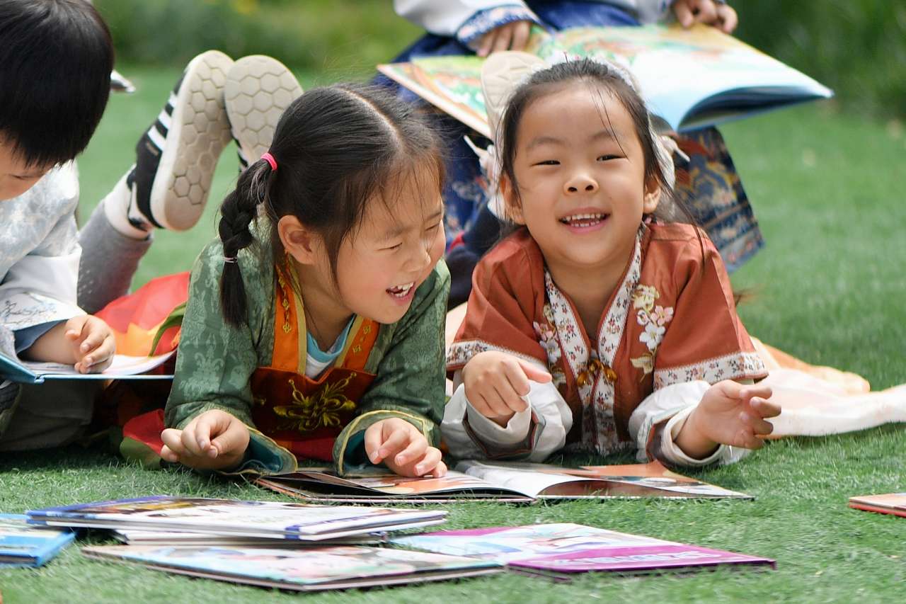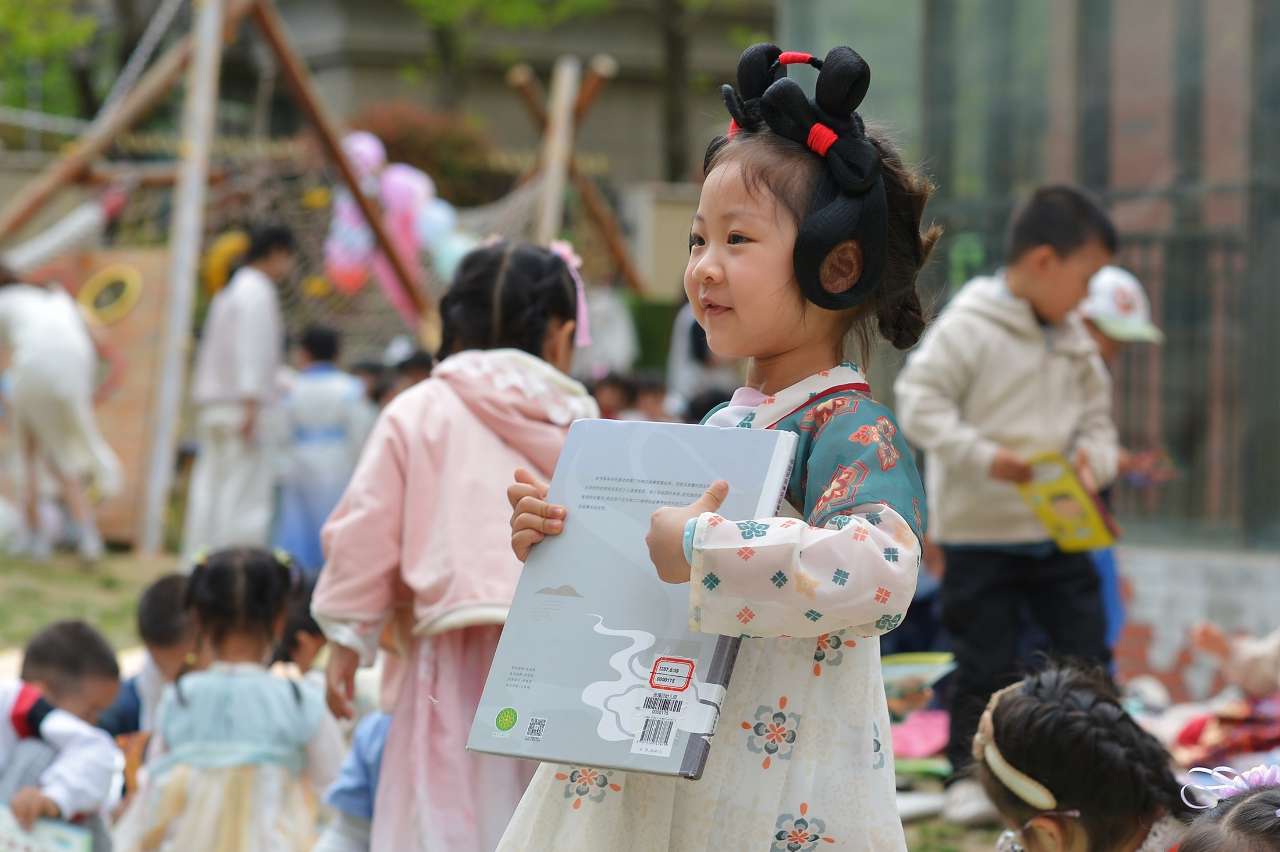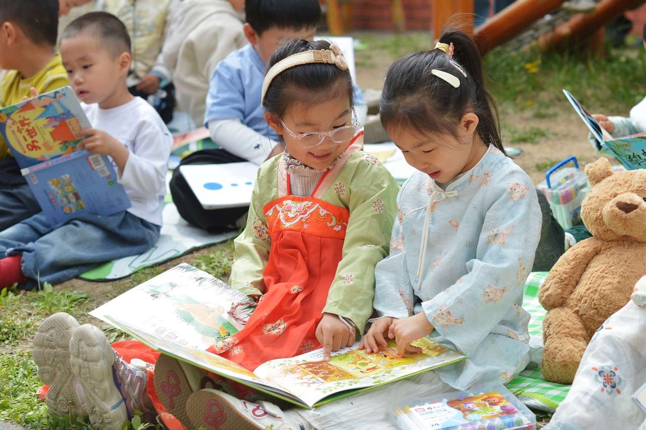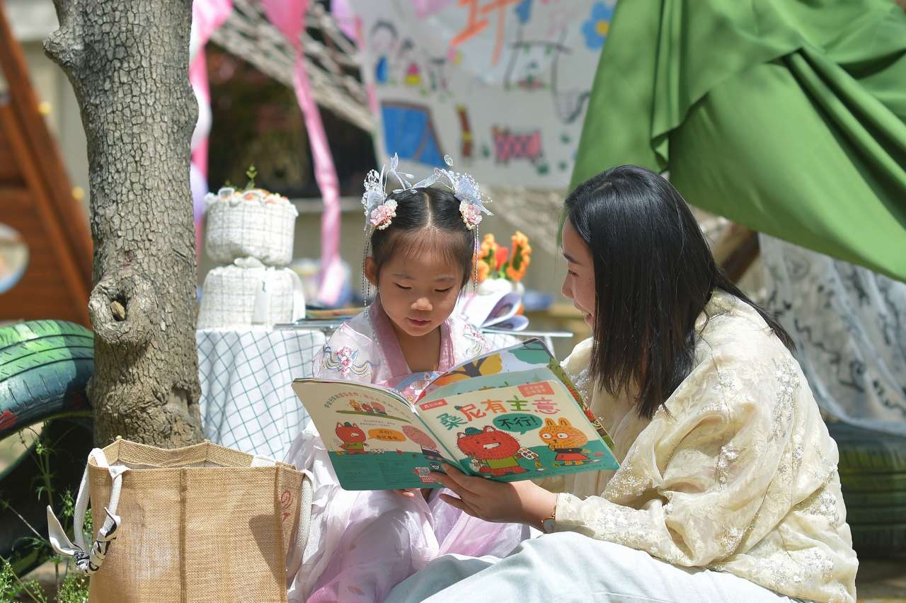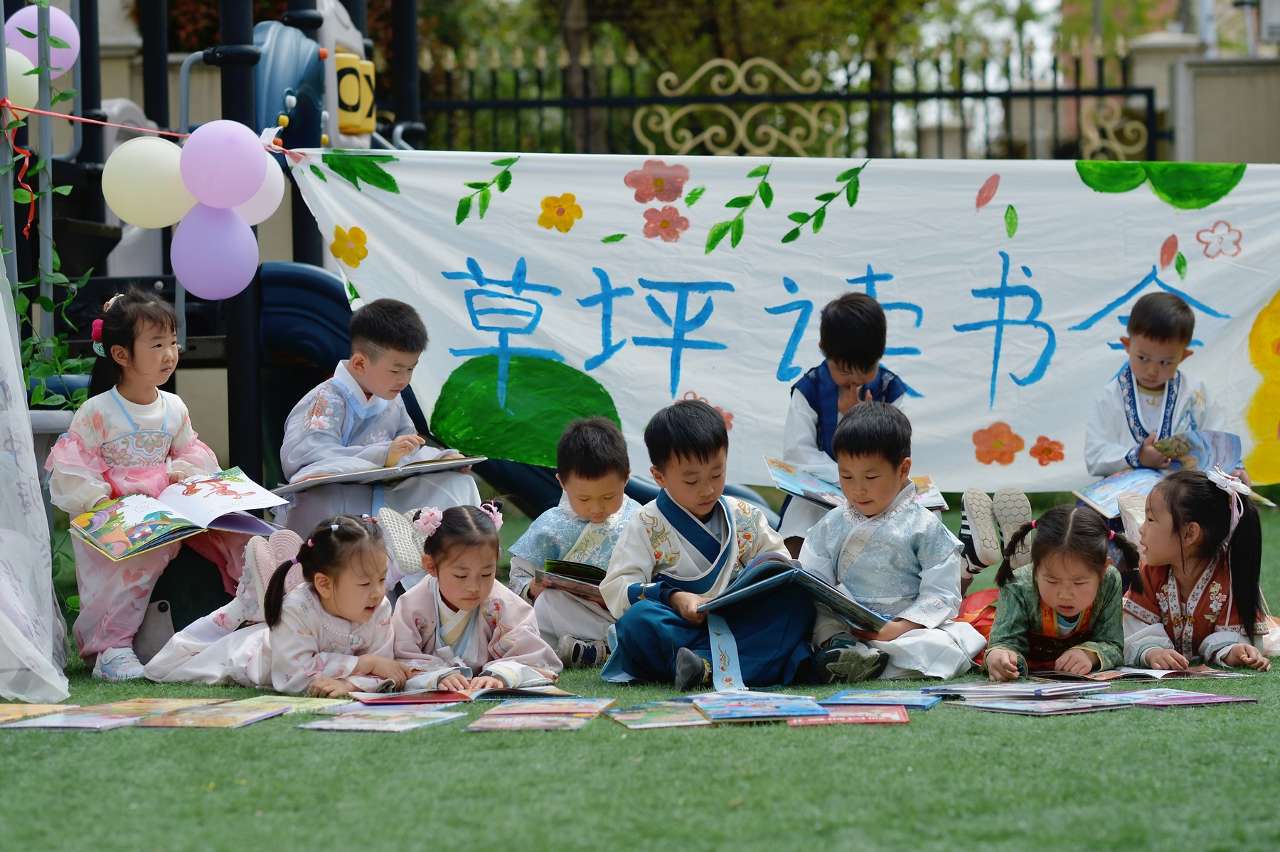 4月16日,山东省青岛市城阳区夏庄街道玫瑰园幼儿园开展春日阅读节主题活动,小朋友们在开心“悦读”。